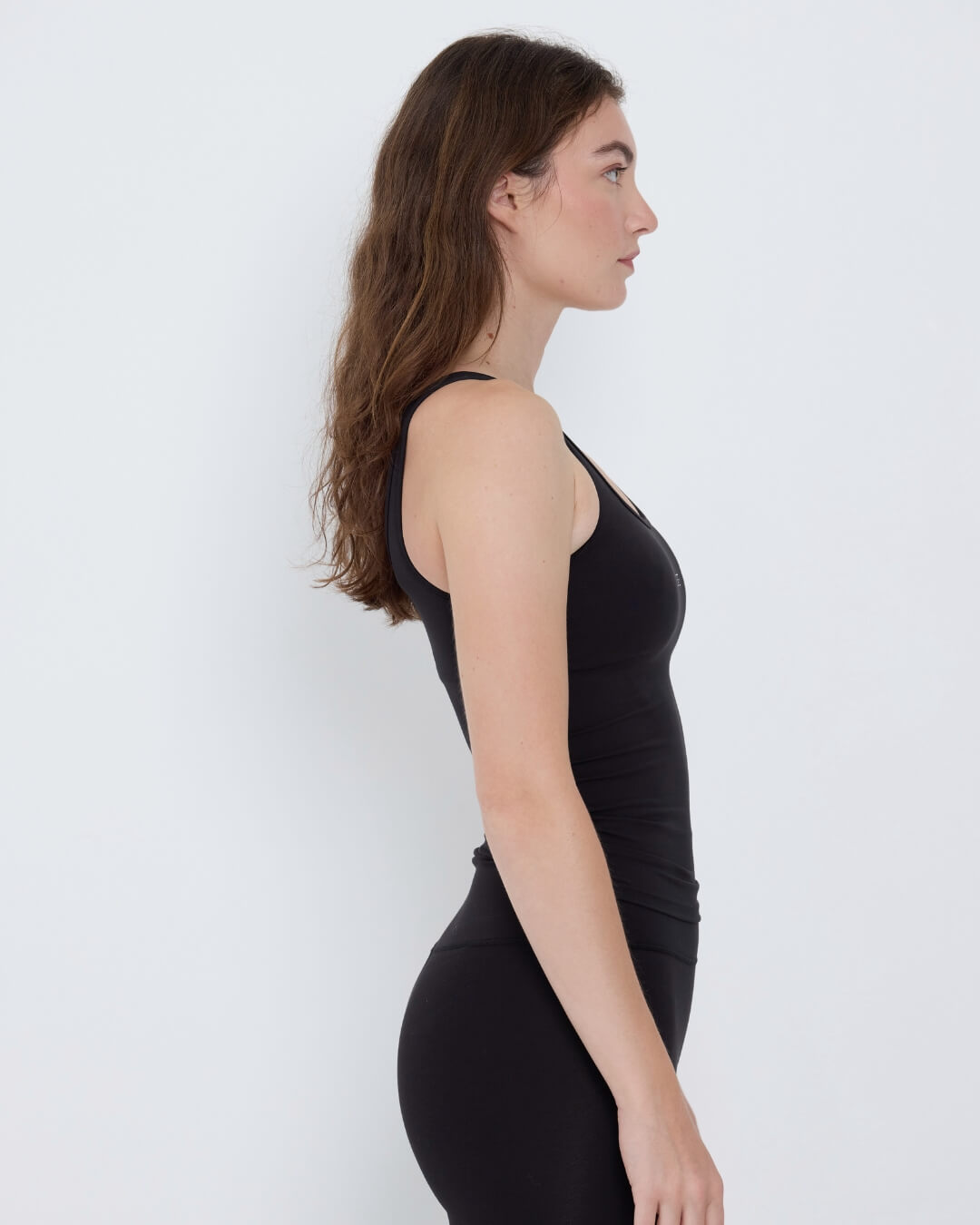 Flattering hourglass fit with a built-in bra and low scoop back for breathability (where many sweat most). Made from the same compressive bamboo performance fabric as the leggings.  Runs small- we recommend sizing up for the best fit and comfort.